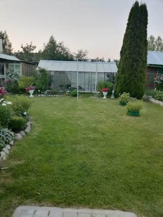 Участок, 6 соток, высокий ровный с плодородной землей. Посажено великое множество многолетних цветов, сортовой малины и плодовых деревьев. Две теплицы, хоз блок, а главное добротная уютная банька! На улице есть туалет, подведена вода для слива.